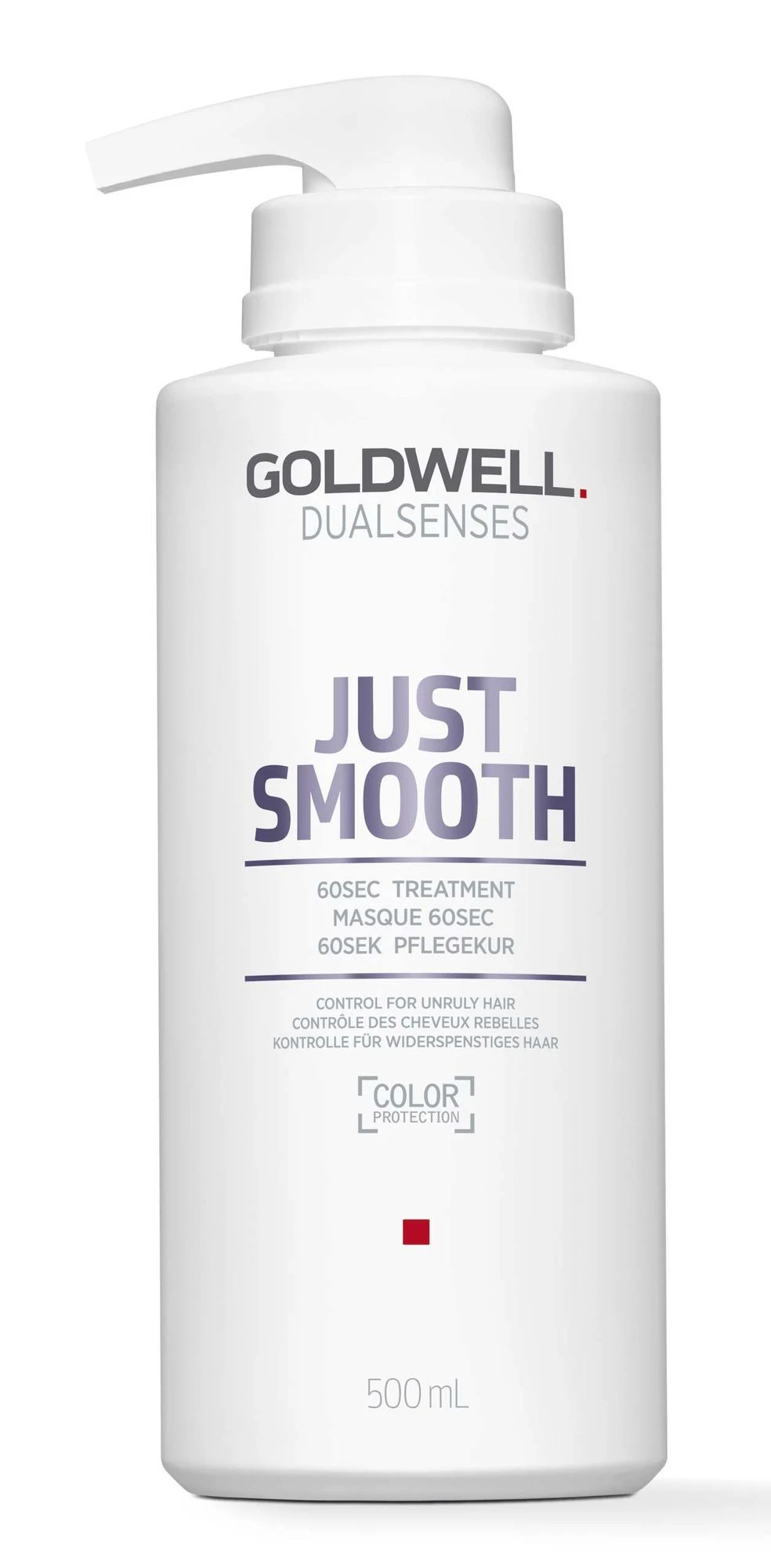 De Goldwell Dualsenses Just Smooth 60 sec. Treatment 500ml regenereert het haar direct tot 100% in 60 seconden. Het haar voelt na gebruik zacht en handelbaar aan. Geschikt voor in de salon en voor thuis.