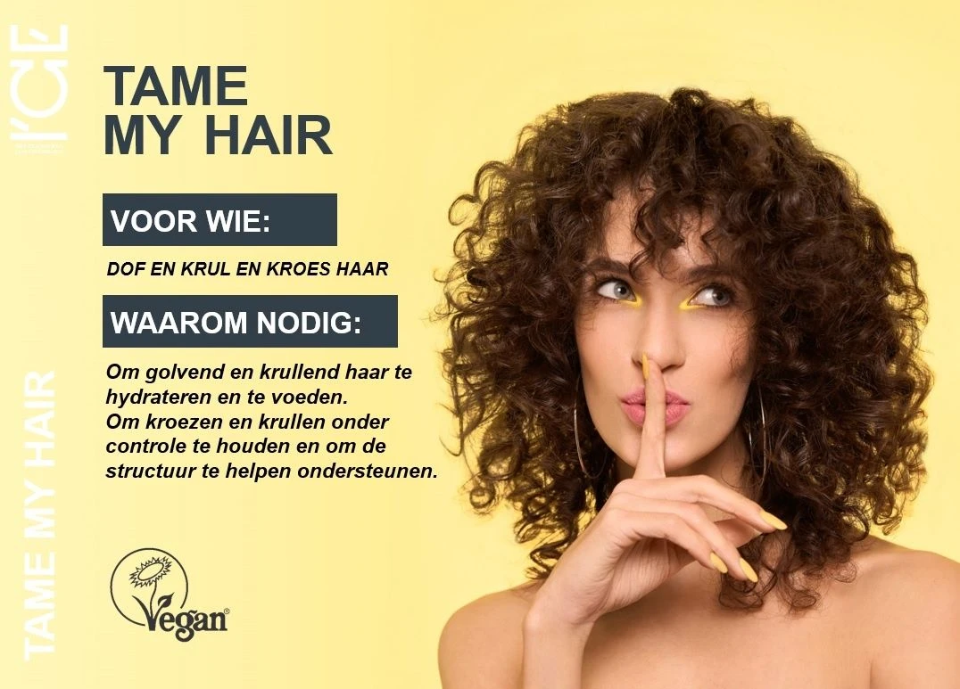 Met ICE Tame My Hair Oil geef je het haar de ultieme verzorging die het verdient. Transformeer dof, krul en kroeshaar in stralend en gezond haar en geniet van zijdezachte lokken die gehydrateerd en gecontroleerd zijn.