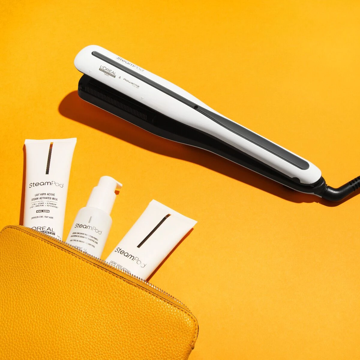 Breng de Steampod 3.0 Smoothing Cream – dik haar aan op het gewassen handdoekdroge haar en föhn het haar vervolgens droog. De Smoothing Crème zal dan goed in het haar kunnen trekken. Breng daarna de Steampod 3.0 Protecting Concentrate aan op het droge haar en verdeel dit over de lengtes en punten van het haar. Nu kan jij beginnen met het stijlen van het haar, door de Steampod 3.0 lok voor lok door het haar te halen.