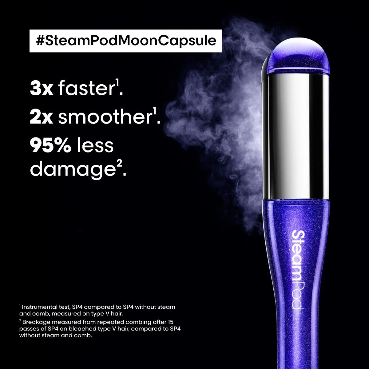 - De unieke werking van deze Steampod zorgt voor een 3x sneller* en 2x gladder* resultaat en zorgt tot 95% minder schade**.