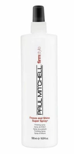 De Paul Mitchell Firm Style Freeze & Shine Super Spray 500ml geeft het extra fixatie met een glanzende afwerking. Het haar wordt beschermd tegen schadelijke uv-stralingen. De haarspray bevat unieke ingrediënten die de glans in het haar versterken. Dit product is vrij van parabenen, gluten en dierproeven. De haarkleur wordt beschermd en de haarspray is gemakkelijk uit te borstelen.