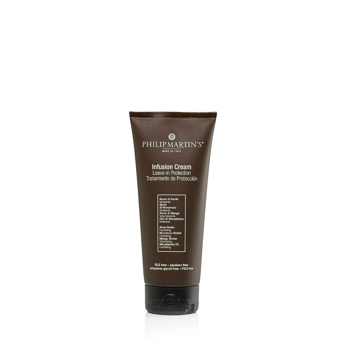 Philip Martin’s Infusion Cream is speciaal ontwikkeld om het haar te beschermen en te verzorgen. De crème vormt een beschermende laag op het haar, waardoor het beschermd wordt tegen hitte en externe invloeden. Het maakt het haar glanzend en makkelijk doorkambaar, terwijl het ook antistatische eigenschappen heeft om pluizig haar onder controle te houden.